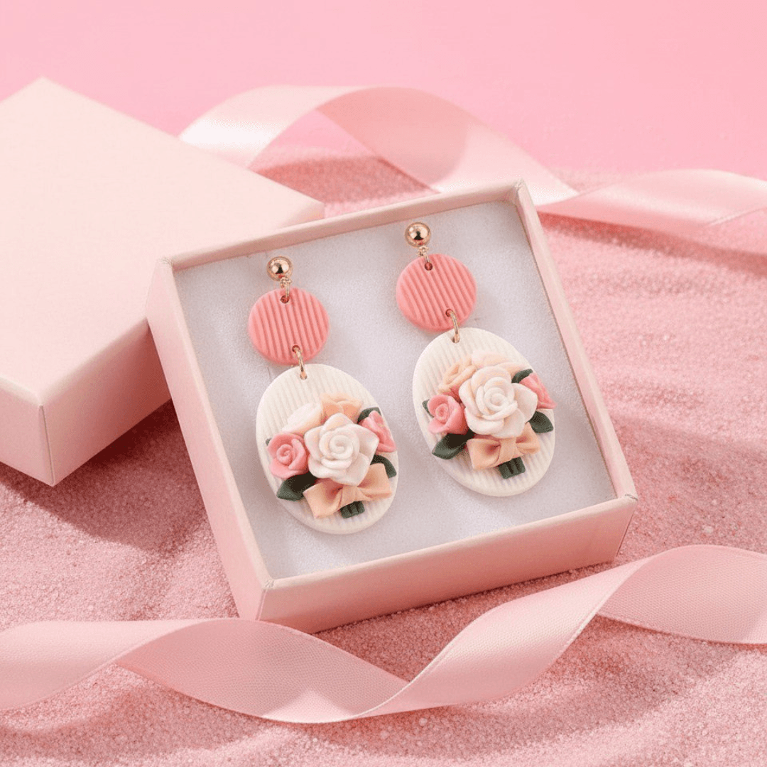 The use of soft ceramic polymer clay ensures that these earrings are not only beautiful but also incredibly lightweight and comfortable for all-day wear. Their elegant and fresh design makes them a versatile accessory for any woman, perfect for gifting on a special occasion or simply to add a touch of romance to your daily look.