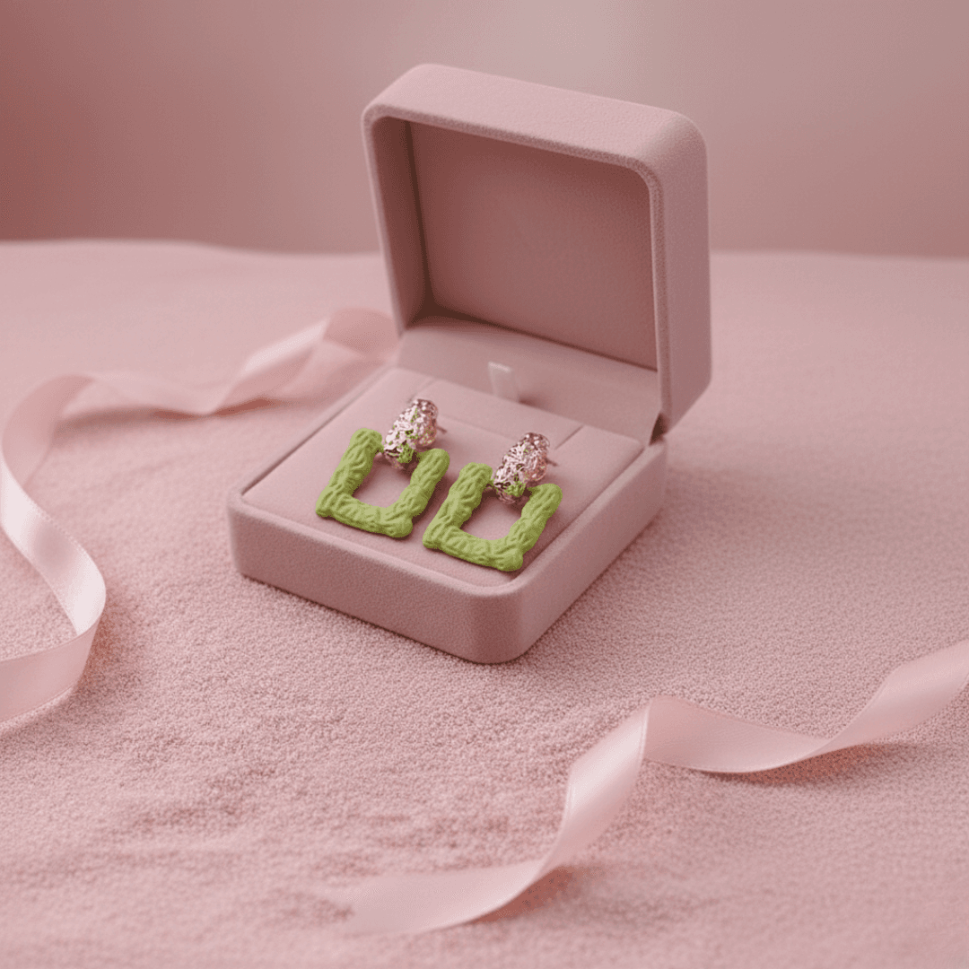 Make a fresh, modern statement with these trendy drop earrings. Featuring a unique geometric square design with a textured, matte green finish and a gold-toned stud, they are perfect for daily wear and add a touch of summer to any outfit.