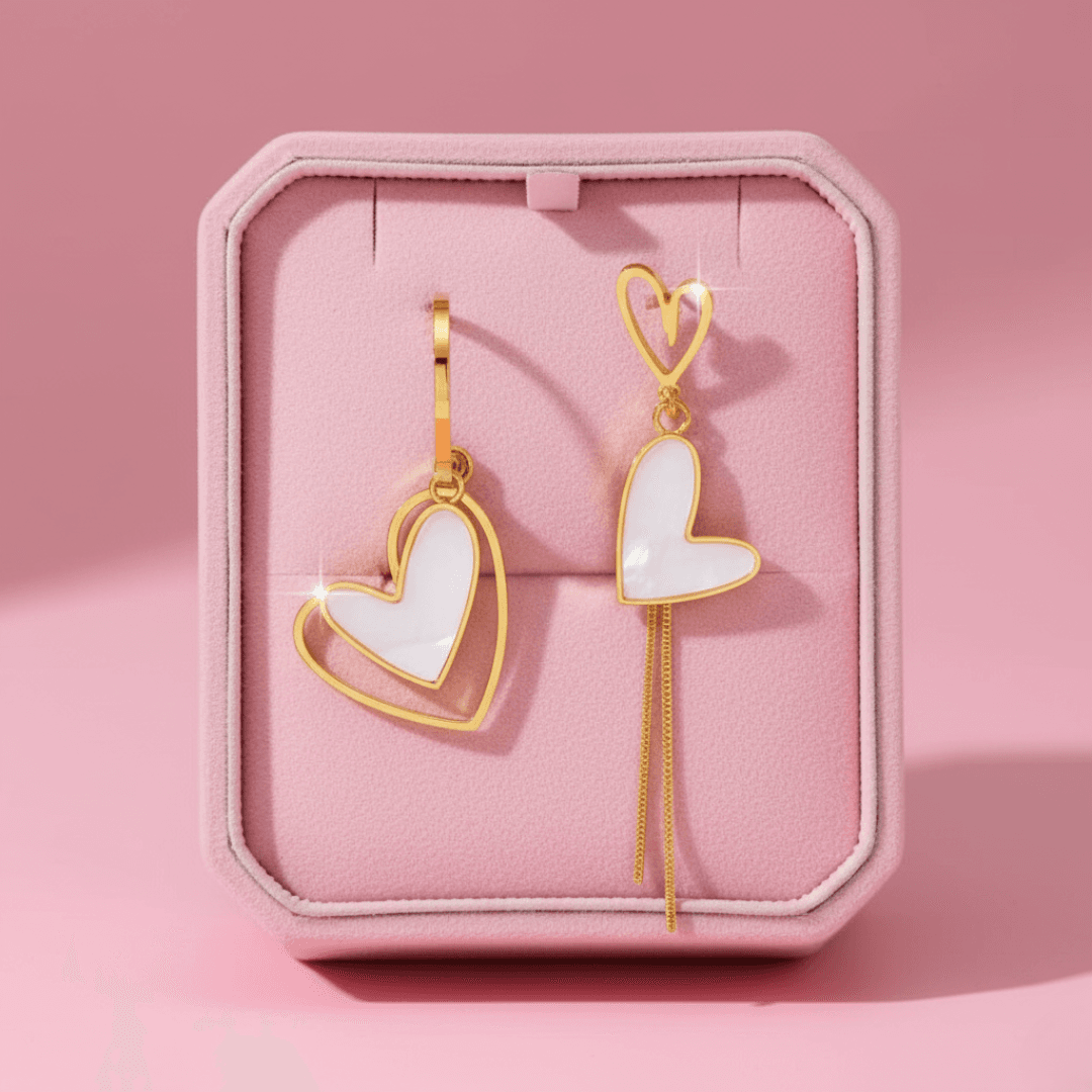 Express your love and style with our unique White Love Heart Stud Earrings. These on-trend earrings are designed for the modern woman who loves a touch of playful asymmetry. Made from high-quality stainless steel, they are durable, long-lasting, and finished in a lustrous gold color. The design features a beautifully crafted white love heart shape, with a clean and elegant finish.